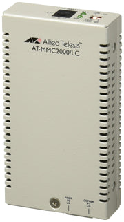 Overview The Allied Telesis MMC2000 Series of Gigabit mini media converters leverages its smaller size to not only help the environment with a small carbon footprint, but also to save space in its working environment. Despite its compact size, the MMC2000 Series delivers all the power and functionality of standard size media converters. Extend Networks The MMC2000 Series mini media converters are the ideal solution for upgrading a traditional 100Mbps Ethernet network or extending a Gigabit network. The MMC2000 Series is designed to extend the distance of a network by converting Gigabit data between twisted pair and fiber-optic cabling. The MMC2000 features a 1000X fiber port and a 10/100/1000T twisted-pair port. The fiber-optic port features an SC , ST, LC, or SFP connector (depending on the model). The twisted-pair port has an RJ-45 connector with a maximum operating distance of 100 meters (328 feet). VLAN Support Many new backbone switch products now support the industry-standard IEEE 802.1Q specification for Virtual LANs (VLANs) that send extralong data packets on the network. The MMC2000 switches are fully compatible with these long packets, enabling them to be used in modern networks. Media converters not supporting this feature discard these extra long packets, making them unsuitable for modern networks. Small and Flexible The smaller size and external power supply of the MMC2000 Series allows them to be used almost anywhere. Smart MissingLink (SML) The Smart MissingLink trade; (SML) feature monitors network connections and provides notification when network segments fail, allowing network managers to quickly identify the source and location of failed segments and minimize downtime. Smart Link Restoration Smart Link restoration allows the devices, in cases of power failure, link loss or other interrupted service, to automatically restore the link without the need to restart/reset them. Power SavingThe MMC Series continues the Allied Telesis commitment to th