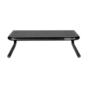 The Metal Art Jr laptop/monitor stand features a clean and timeless design that raises your laptop or monitor to a comfortable and ergonomically correct viewing height. Forged from steel and powder coated, it provides a sturdy shelf for your laptop, monitor, TV or printer. Additionally, there's space beneath for your keyboard or other office supplies and electronics. The Allsop Metal Art curved steel monitor stand was designed in the USA by engineers in Bellingham, WA and was the first and original curved metal monitor stand to be introduced and sold in North America. The Allsop Metal Art series of products continues to be of the highest quality and popularity with over one million units sold.