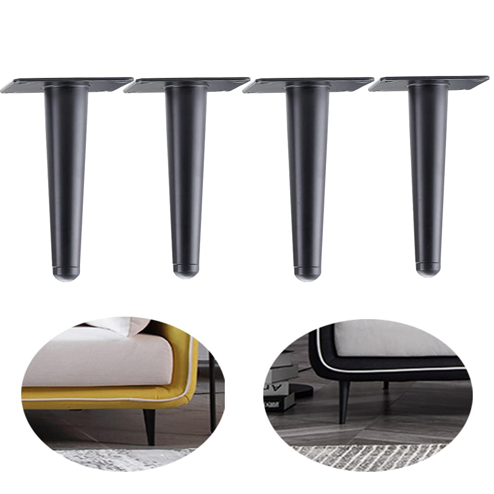 ALXEH Straight Furniture Table Legs 6 Inch, Round Tapered Metal Furniture Legs Black, Modern Dresser Cabinet Sofa Support Feet R