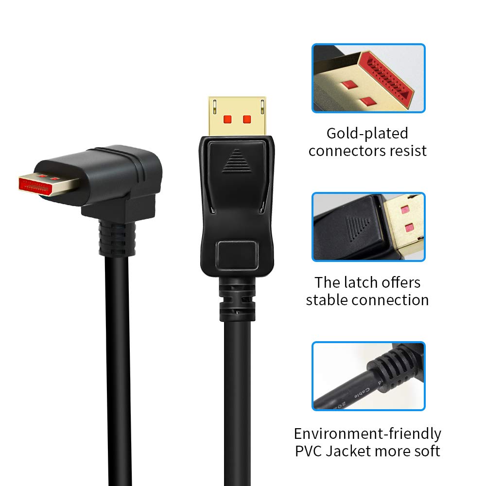 Package Included: Right-angle DP 1.4 Male to Male Cable X 1pcs Item Information 1. DP 1.4 compliant Male to Male 2. resolutions up to 8K (7680x4320) @ 60Hz 4K/144Hz 3. A proper cable to fit the tricky scence and prtect your dp interface ?Note? Plz DO check your device and our cables carefully to choose the proper angled cable.