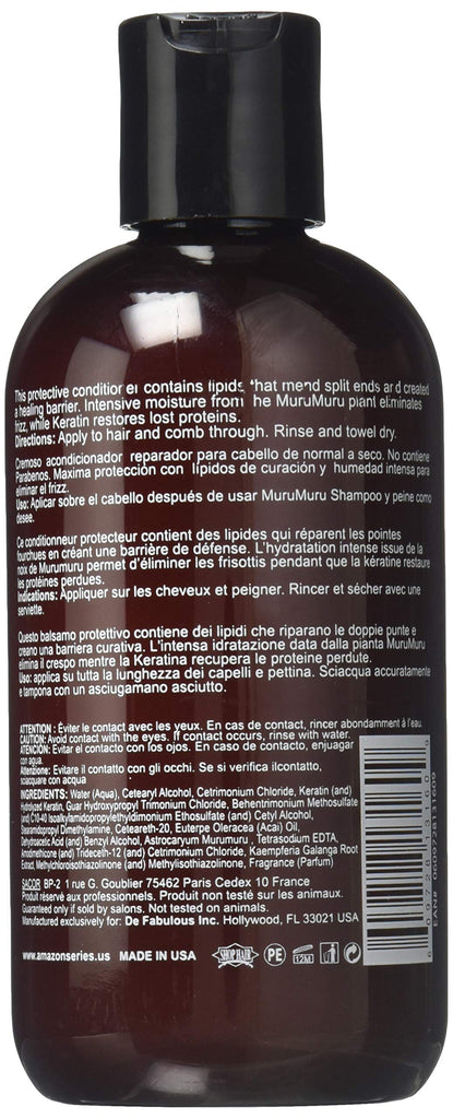 The Amazon Series Conditioner restores moisture and health to skin and hair with MuruMuru Butter, an extremely effective and all natural ingredient. Combined with the A?ai Berry, MuruMuru anti-Frizz Keratin Conditioner delivers luxurious results. The amazing MuruMuru plant contains plenty of protective lipids that when applied to skin or hair help to repair lipid barriers while pure Keratin restructures and retexturizes damaged, porous hair. Intense moisture and protein is restored, and frizz is eliminated.