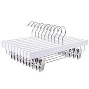Amber Home White Wooden Pants Skirts Hangers 10 Pack, Solid Wood Trousers Bottom Hanger with 2-Adjustable clips, clips Hangers for Slacks, Jeans, Shorts (White, 10 Pack)