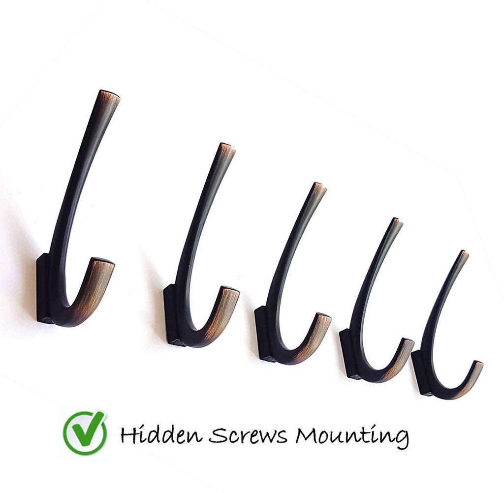 Ambipolar 5 Pack Premium Design Commander Heavy Duty Big Double Hooks Hidden Screws. Entryway Coat Hooks, Scarf and Jacket Hange