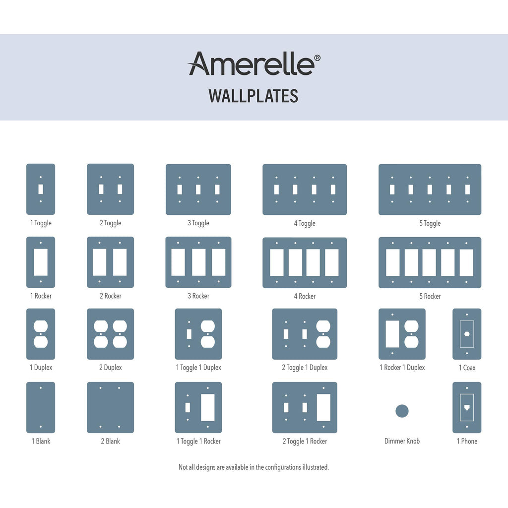 The Amerelle Chelsea Wallplate pairs well with various decor styles, including Bohemian, Coastal, Contemporary, Country, Cottage, Farmhouse, Scandinavian, and Transitional.
