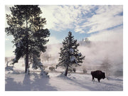 The print features an American bison in a winter landscape, capturing the essence of Yellowstone National Park in Wyoming.