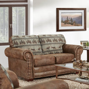 Beautiful Tapestry Coupled With Leather-Look Microfiber Fabric Makes This Loveseat Come Alive With The Colors Of Nature. Solid Wood Frames Create A Product That Will Last For Years, And Solid Wood Legs And Nailhead Accents Bring A Rustic Look To This Loveseat. Soft But Supportive Cushions Are Filled With High Density Foam And A Layer Of Fiber Wrap. This Is A Perfect Loveseat For Your Den Or Living Room.