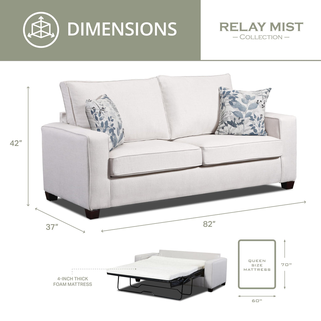 Queen Mattress - Queen Mattress: 60 In W X 70 In D X 4 In H | 100% Polyester Fabric - Features A Beautiful 100% Polyester Soft Washed Tweed Fabric | Solid Wood Frame - Solid Wood Frame Will Last For Years | Detachable Fiber Filled Seat And Back Cushions - Comfortable Foam Seats, Cushions Are Wrapped With Fiber For A Comfortable Seat, Detachable Fiber Filled Back Cushions For A Comfortable Seating Experience | Two Pillows Included - Two Beautiful Double Sided Pillows With Welt Included, One Side Is Tweed And The Opposite Side Is A Beautiful Blue Floral Tapestry