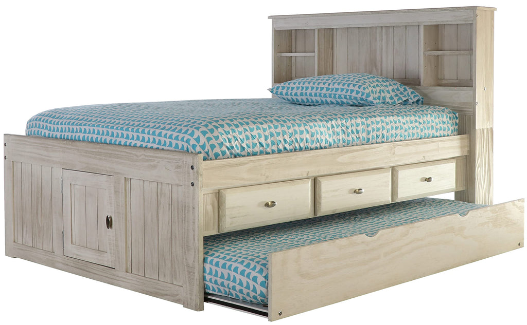 Add Style To Your Child'S Bedroom With This Full Size Bookcase Bed In A Light Ash. The Ready-To-Assemble Unit Provides Loads Of Storage With Two 6-Drawer Pedestals And A Footboard Storage Door, Which Allows Access To The Area Beneath The Bed. Quality And Solid Wood Construction Makes This Bookcase Bed An Excellent Investment.