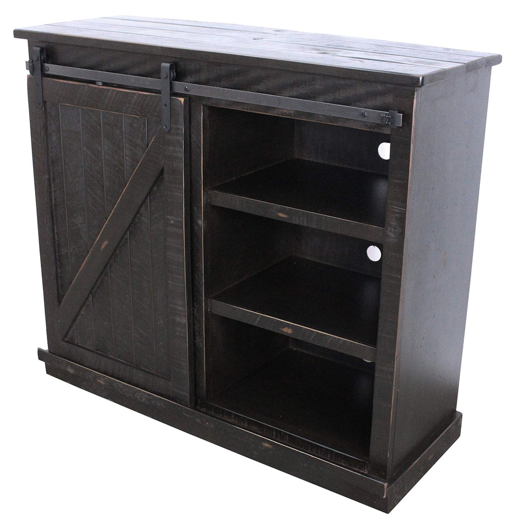 The TV stand has a rustic antique black finish, adding a charming vintage look to your living space.