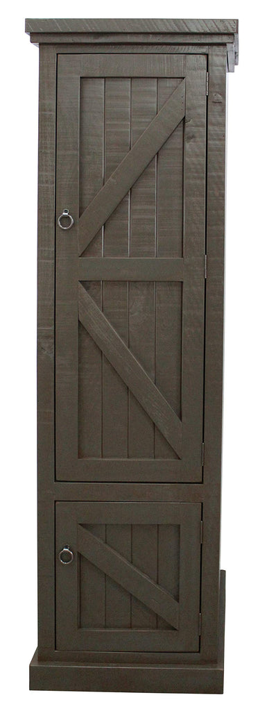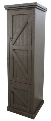 The American Heartland Rustic Single Door Armoire is made from wood, providing durability and a rustic aesthetic.