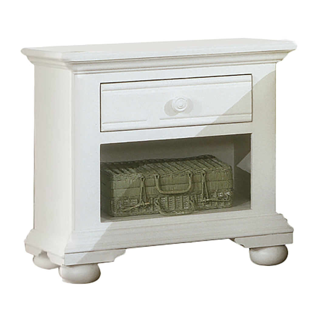 Bring Instant Charm And Warmth To Your Bedroom With Cottage Traditions’ Small Nightstand From American Woodcrafters. The Nightstand, Finished In Eggshell White, Sits On A Decorative Shaped Block Base Supported By Bun Feet. One Drawer With Solid Wood Knob And Open Base Shelf Storage Add Simplicity And Flexibility. Built From Solid Wood With Corner Block Construction And English Dovetail On Front And Backs, The Nightstand Combines Style With Functionality. The Drawer’S Solid Wood Sides And Backs Feature Pine Veneer Bottoms For Snag Free Storage Of Delicate Items, Center Guided Metal Drawer Glides With Built In Stops For Stability, And Dust Proofing On Bottom Drawers For Added Protection. Mortise And Tenon Construction, Solid Pine And Pine Veneers Give This Furniture Strength And Durability As Well As Charm.