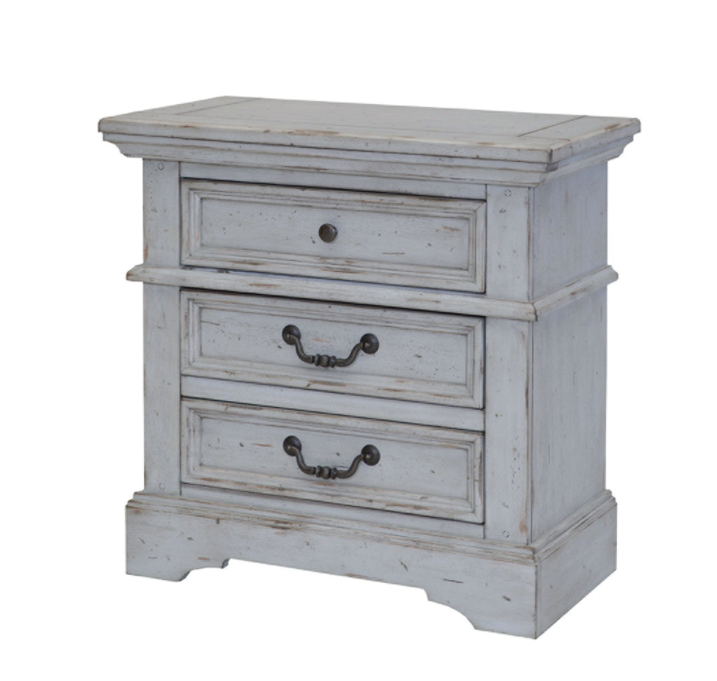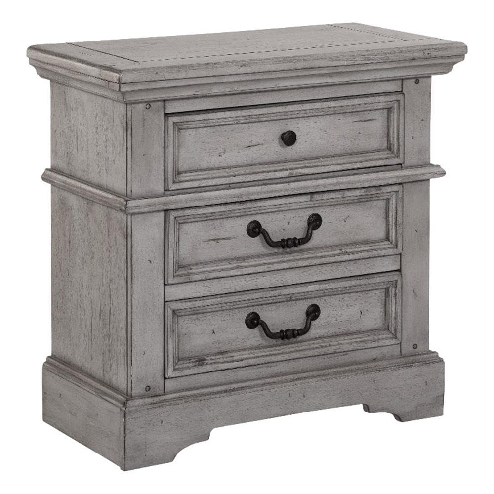 Make The Warm And Welcoming Stone Brook Bedroom Collection A Part Of Your Home. The Antique Gray Finish Is Lightly Distressed Giving Character To This Well Crafted Collection. The Stone Brook Nightstand Features 3 Drawers For Abundant Storage Along With Detailed Molding And Hammered Metal Knobs And Drawer Pulls. To Prevent Snagging, Drawer Interiors Are Finished And The Top Drawer Is Felt Lined To Protect Your Finer Things. Purchase Includes Nightstand Only.