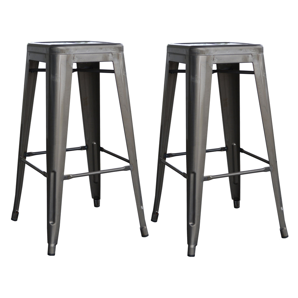 These Amerihome Metal Bar Stools Are Durable Enough For Use In The Shop, And Stylish Enough To Use In The Kitchen, Game Room, Bar, Basement, Dorm Room, Or Loft. Ideal For Small Spaces, The Bar Stools Easily And Neatly Stack Together, Making Them Easy To Stash Out Of The Way For Storage. A Handle In The Seat Makes The Stools Easy To Pick Up And Move. Lightweight And Sturdy, Each Stool Weighs Only 12.5 Lbs., But Is Strong Enough To Hold Up To 330 Lbs.Each Metal Bar Stools Has A Brace Under The Seat That Provides Additional Support And Stability. No-Mar Rubber Feet Keep Them From Sliding And Scratching Hardwood Floors. They Bar Stools Are Painted Deep Gunmetal Silver With A Scratch-Resistant Powder Coat Paint Finish. Each Bar Stool Stands 30 Inches Tall With A Seat Measuring 12 In L X 12 In W. Sold In A Set Of 2.Note As Restrictedshipping Incalifornia