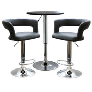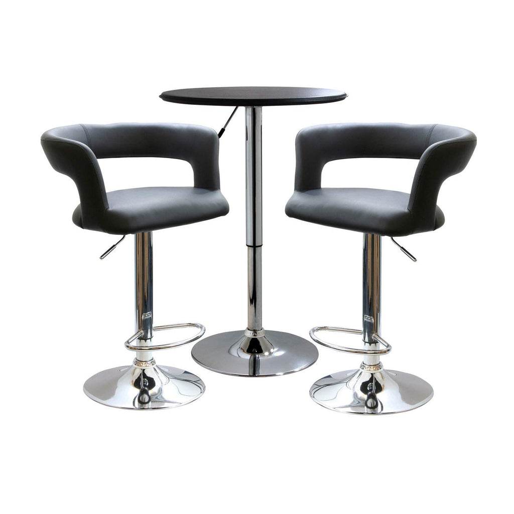 The Amerihome Modern Curvy Bistro Set 3 Piece Set Includes Two Adjustable Height Bar Stools And One Adjustable Height Bar Table. The Polished Chrome Base And Black Vinyl Seats Are Reminiscent Of The Days Of Diners And Drive-Ins. Add A Hint Of Classic Retro Design To Your Kitchen, Bar, Game Room, Basement, Or Shop.The 3 Piece Adjustable Height Bar Set Is Comfortable For Kids And Adults To Sit Together. The Bar Stools Have A Large 21.5 Inch Wide By 19.5 Inch Deep, Vinyl Padded 360-Degree Swivel Seat, A Padded Vinyl Backrest, And A Built In Footrest. The Adjustable Height Bar Table Measures 25 Inches In Diameter, With A Black Textured Vinyl Covering On The Tabletop That Makes Wiping Up Spills Easy. Bar Stool Adjustable Height: 24 To 32 In., Bar Stool Weight Capacity: 330 Lbs.Bar Table Adjustable Height: 26 To 36 In., Bar Table Weight Capacity: 200 Lbs.Includes 1 Adjustable Bar Height Table And 2 Adjustable Counter Height Bar Stoolsnote As Restrictedshipping Incalifornia