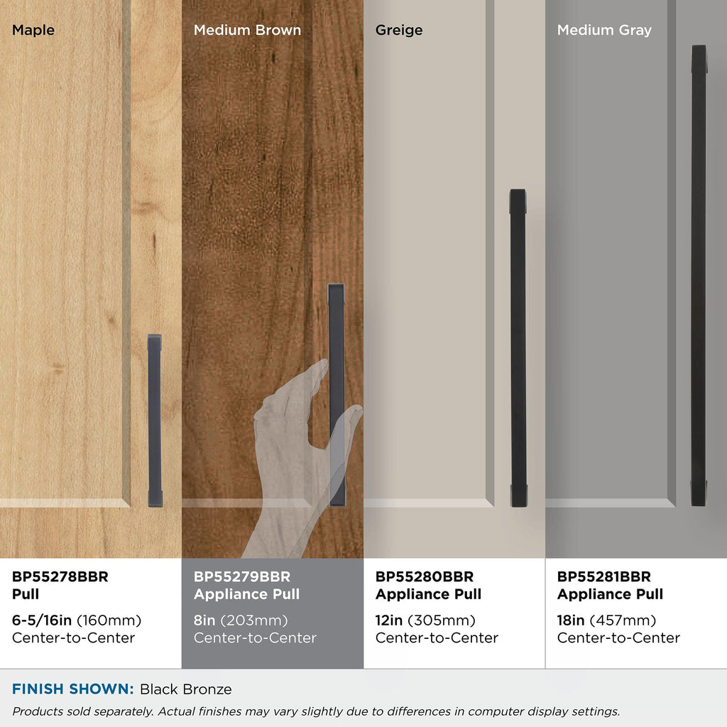 The Amerock Bp55279Bbr Blackrock 8 In (203 Mm) Center-To-Center Appliance Pull Is Finished In Black Bronze. The Blackrock Collection Offers Sleek Simplicity With A Contemporary Indulgence. This Eclectic Line Boasts Bold Shapes And Sizes. Black Bronze Is A Warm And Slightly Textured Dark Finish Which Nods To The Softer Side Of Black Without Losing The Richness Of The Bronze Feel. Amerock Offers A Complete Line Of Decorative And Functional Cabinet Hardware, Bath Hardware, Hook And Rail And Wall Plates. Amerocks Award-Winning Decorative And Functional Hardware Solutions Have Built The Companys Reputation For Chic Design Accessories That Inspire Homeowners To Express Their Personal Style. Available In A Variety Of Finishes And Styles, Amerock Offers High Quality Designs At Affordable Prices. Always Creating. Always Timeless. Always Amerock.