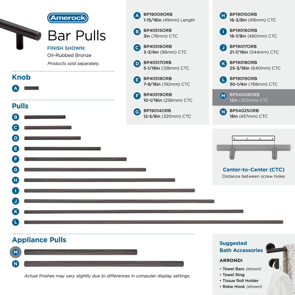 The Amerock Bp54008Orb Bar Pulls 12 In (305 Mm) Center-To-Center Appliance Pull Is Finished In Oil-Rubbed Bronze. Modern Functionality Meets Straightforward Styling. Simple. Bold. True. The Sleek And Sophisticated Design Of The Bar Pulls Collection Makes A Statement With Clean Lines And Smooth Textures. The Oil-Rubbed Bronze Finish Is A Rich, Dark Brown Old World Finish With Striking Light And Dark Accents. Amerock Offers A Complete Line Of Decorative And Functional Cabinet Hardware, Bath Hardware, Hook And Rail And Wall Plates. Amerocks Award-Winning Decorative And Functional Hardware Solutions Have Built The Companys Reputation For Chic Design Accessories That Inspire Homeowners To Express Their Personal Style. Available In A Variety Of Finishes And Styles, Amerock Offers High Quality Designs At Affordable Prices. Always Creating. Always Timeless. Always Amerock.
