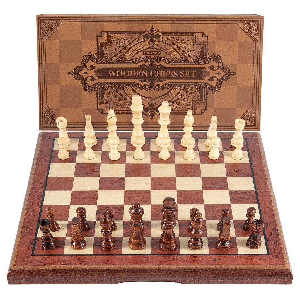 AMEROUS 15 Inches Magnetic Wooden Chess Set - Folding Board - 2 Extra Queens - Chessmen Storage Slots - Gift PackageWhy Choosing Us? Made of premium wood with smooth texture to provide a quality touch 15 inch large board to play for fun and comfort Folding design makes it portable to carry around especially for travelling Including 2 extra queens as a bonus Magnetic chess pieces crafted for better stability without worrying for piece falling or missing Bottom of pieces are processed smoothly to ensure no scratches on board Exquisitely hand-carved wood to ensure an elegant look - like a piece of art Perfect gift choice for kids, friends, chess players on special events or holidays 365-day money-back service for quality insurance Specifications: Item: Wooden Chess Checkers Set Material: Wood Board Size: 15 x 15 inch King Height: 3 inch Package Includes: 1 X Magnetic Wooden Chess Set (with 2 extra queens) 1 X Chess Rules We provide an 100% satisfying guarantee. If there is any problem, please feel free to contact us. Don't hesitate, just order it!