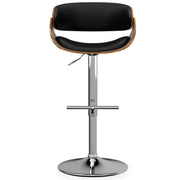 The SIMPLIHOME Amery Adjustable Swivel Bar Stool is designed for indoor use in kitchen, family room, or bar areas and is not recommended for outdoor use.