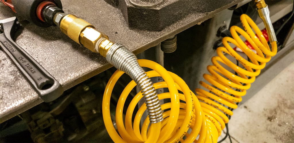 Nylon Recoil Hose Retains Its Self-Coiling Properties And Stores Itself When Finished Can Be Used With All Air-Powered Equipment On The Job Site And In Garages, Plants And Service Stations The Swivel End Fittings Reduce Hose Twist Temperature Range: +32A F To +120A F 1 Year Warranty