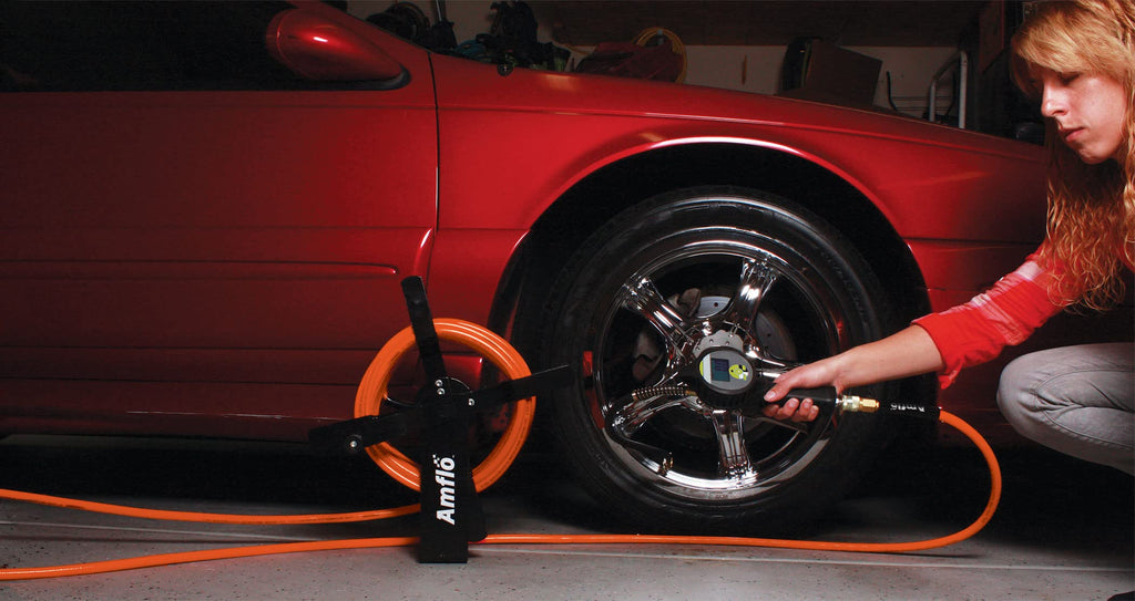 The Amflo 576-50A air hose measures 3/8 inches in diameter and is 50 feet long.