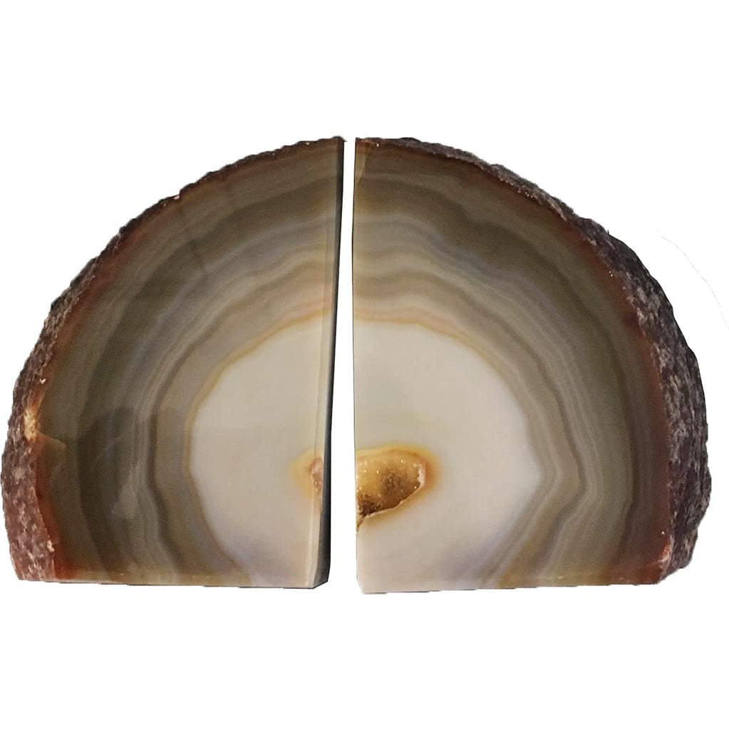AMOYSTONE Agate Bookends for Shelf Decorative geode Book Ends for Heavy Books crystal Bookends for Shelves Nature Brown Small(1 Pair, 2-3 LBS)