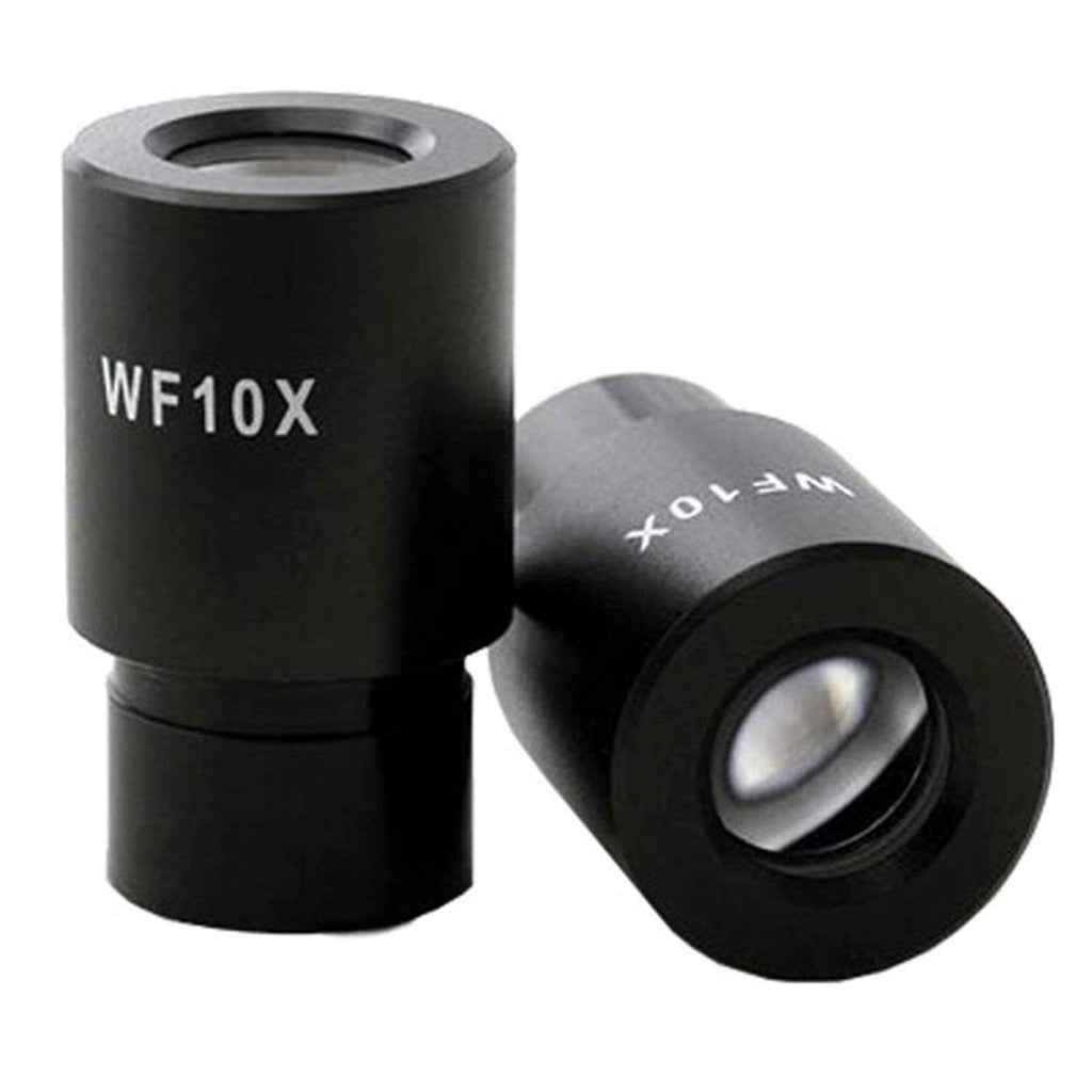 These are a pair of brand new widefield WF10X microscope eyepieces They are Achromatic (International DINJIS) standard size with outside diameter of 23 mm They fit most common size compound microscopes give your microscope a boost with greater power & clarity at a fraction of costFeatures & Specifications : 10X Magnification Power 23mm Mounting Size (in diameter) Wide Field of View