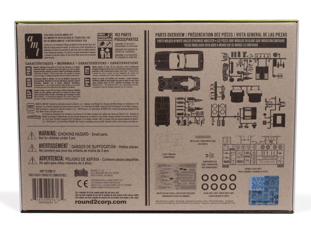 The AMT 1963 Chevy Corvette Convertible model kit contains 163 parts.