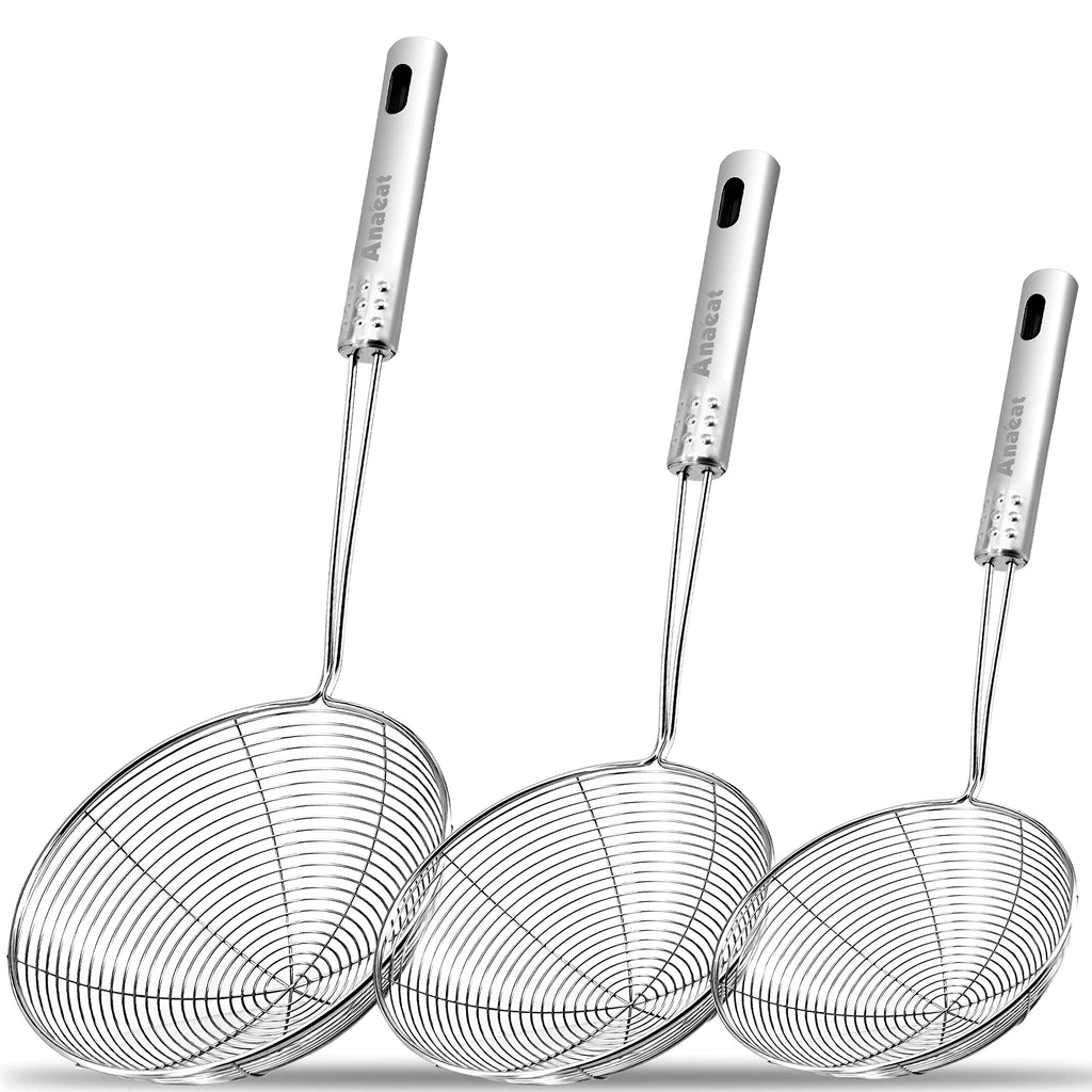 ANAEAT Stainless Steel Spider Strainer Skimmer, Set of 3 Professional Kitchen Pasta Strainer Spoon with Long Handle - Asian Strainer Ladle Wire Skimmer Spoons for cooking and Frying (45+53+61)