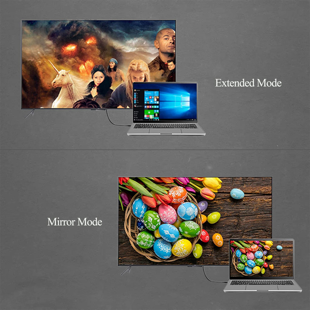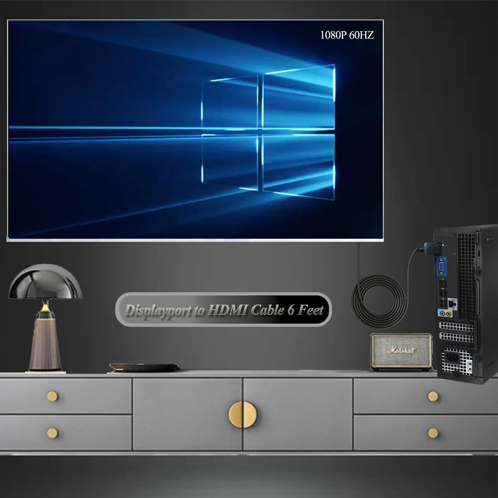 The Anbear DisplayPort to HDMI Cable 6 FeetDesigned for connecting DisplayPort equipped computer systems to HDMI equipped monitors, providing optimal video quality up to 1080p HDTV or 1920 x 1200 PC graphics. It is a cost-effective solution to allow your DisplayPort computer to work with the HDMI display for business, home entertainment, conference rooms, and more.Connectors- Input: 20-pin DisplayPort( Male )- Output: 19-pin HDMI( Male)Important Notes-DisplayPort to HDMI is NOT bi-directional. It only connects to a display with HDMI.-Depress the latch on the DisplayPort connector to avoid damage when unplugging.-DisplayPort is different than USB. Check the port on your computerSpecifications- PC resolution supported: 800x600, 1024x768, 1280x768, 1280x800, 1280x960, 1280x1024, 1440x900, 1600x1200, 1680x1050, 1920x1080, 1920x1200 .- HDTV resolution supported: 480i, 576i, 480p, 576p, 1080i and 1080p@60Hz.- Audio: 7.1 Channel surround audio- Bandwidth: Up to 2.25 Gbps- Regulatory approvals: FCC, CE, RoHSCompatible Devices- Desktops and Laptops with an available DisplayPort---- output- TV,projector and Monitor with an HDMI----------------------InputWhat's in the Package- DisplayPort to HDMI cable 6 FeetWarranty & Support- Limited One-Year Warranty and Lifetime Product Support