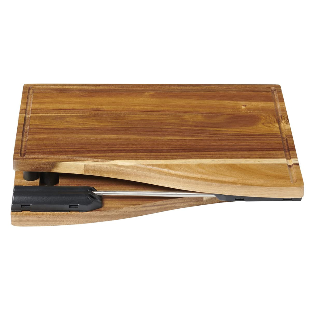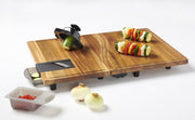 The Swing Board is not one, not two, but three cutting boards in one. A single cutting station, with a swing, expands to counter-sized. Meat and veggies, fish and fruit - cut all parts of a meal simultaneously without worrying about cross-contamination. Deep runoff ridges and a gap in the middle keep the cutting boards separate. Working on something bigger like a turkey? A simple slide brings the boards together to give you a single massive surface. Slicers, measurers, and even waste disposal trays all come as add-ons that slip in, slip on, then slide right in the dishwasher for easy cleaning. A professional kitchens prep station - made portable for your home.