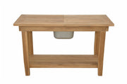 The Nautilus Console Table Is A Very Unique Designs. Made Of Plantation Kiln Dried Premium Teak Wood With Wide-Slats, Mortise-Tenon Joinery, Stainless Steel Container And Large Shelf For Storage. Perfect For Entertaining Your Family And Friends At Your Backyard. Open By Pulling The Table Top And Use The Stainless Steel Container For Putting Ice Cube With Bottles / Cans Or Close It For Convenience Console Table. The Table Comes Knock Down And Easy To Assemble.