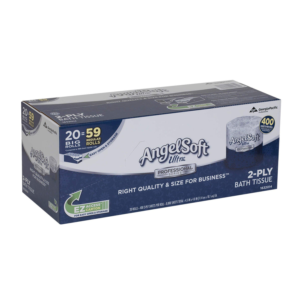 Angel Soft Professional Series, Toilet Paper Roll, 2 Ply, Sheet Size 4 1/2 in x 4 in, 400, Roll Length 133 ft, Roll Dia. 4 7/8 in, Universal, 4 1/2 in Sheet Width, 4 in Sheet Length, 1 5/8 in Core Dia., White, Compatible Grainger Part Number 1CF35, 2U257, 36L523, Compatible Mfg. Model Number 57120/01, 57320, 57893, Standard Core, Package Quantity 60