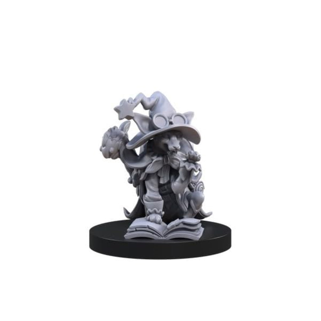 The set includes six fully assembled, highly detailed miniatures of cats, each designed to represent a classic fantasy class.