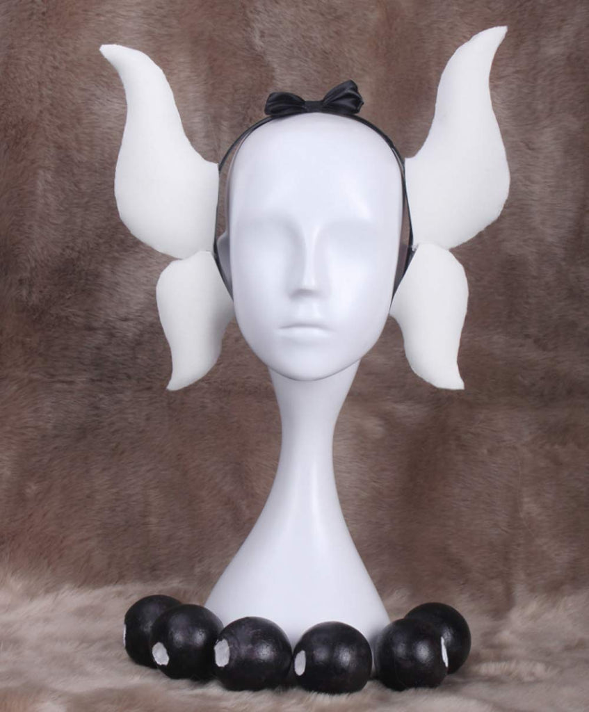 Anime Cosplay Wig Long Purple White Mixed Gradient Hair Synthetic Wigs+6 Balls+Horn+Tail