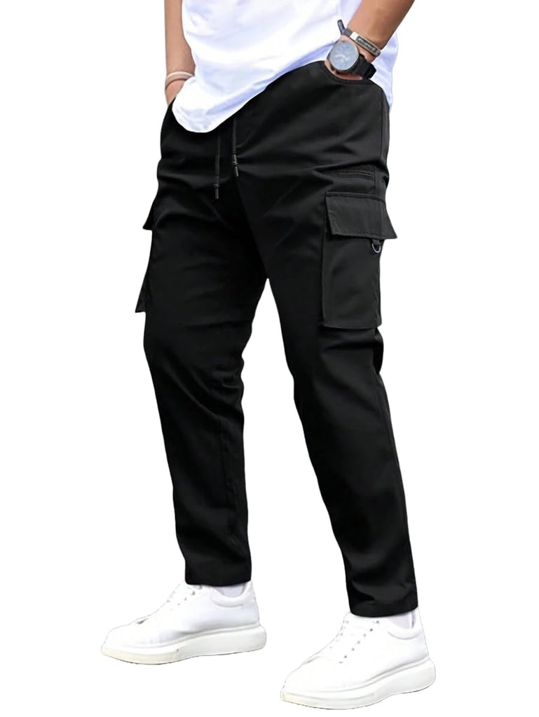 Anni Designer Men'S Pure Cotton Casual Regular Fit Cargo With 4 Pockets (Kargo Black_M_Black_Medium),Black,M,Cotton,Cargo,