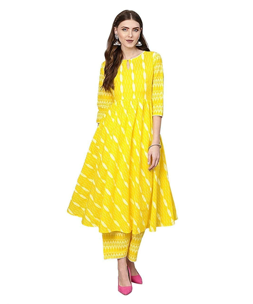 Descriptionanni Designer Women'S Cotton A-Line Kurta With Pant [Yellow S]