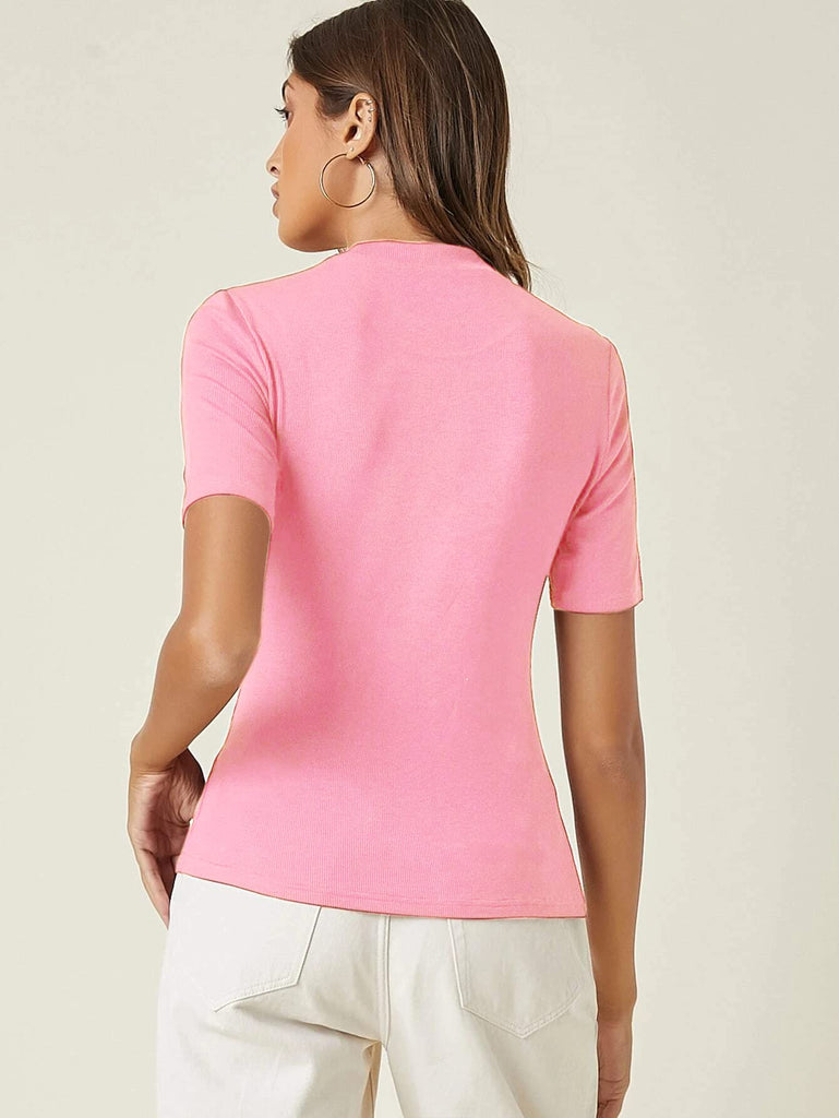 Anni Designer Women'S Cotton Belnd Lycra Ribbed Solid Half Sleeve Round Neck Top (Ntpr-Baby Pink_L_Baby Pink_Large),Pink,L,Cotton Blend,Western,