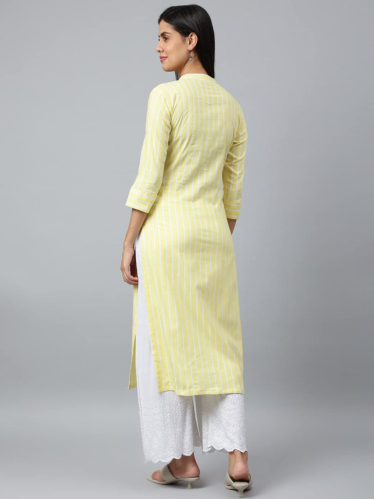 Anni Designer Women'S Cotton Blend A-Line Printed Kurta With Palazzo (Shrita Yellow_Xl_Yellow_X-Large),Yellow,XL,Cotton Blend,A-Line,kurta