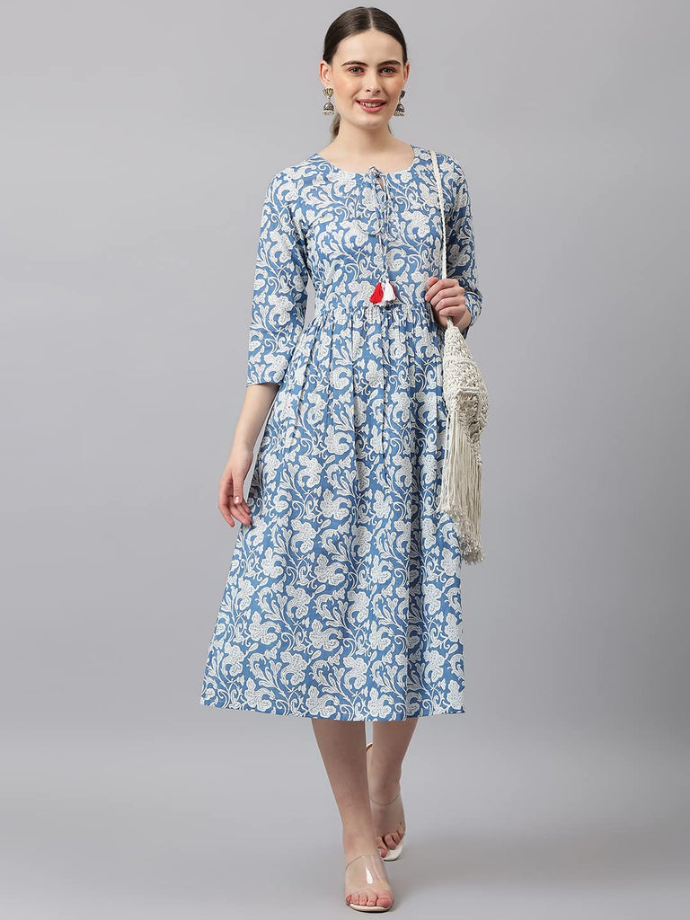 Descriptionanni Designer Women'S Cotton Blend Anarkali Printed Kurta (Fulkali New Blue_M_Blue_Medium)
