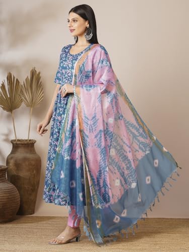 Anni Designer Women'S Cotton Blend Anarkali Printed Kurta With Pant & Dupatta (Nina Kerocin-Vks01_S_Blue_Small),Blue,S,Rayon Blend,Anarkali,