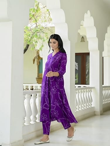 Anni Designer Women'S Cotton Blend Anarkali Printed Kurta With Pant (Marup Begani-Nw_5Xl_Begani_Xxxxx-Large),Begani,5XL,Cotton Blend,Anarkali,