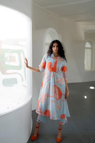 Anni Designer Women'S Cotton Blend Anarkali Printed Kurta With Pant (Santra Orange_L_Orange_Large),Orange,L,Cotton Blend,Anarkali,
