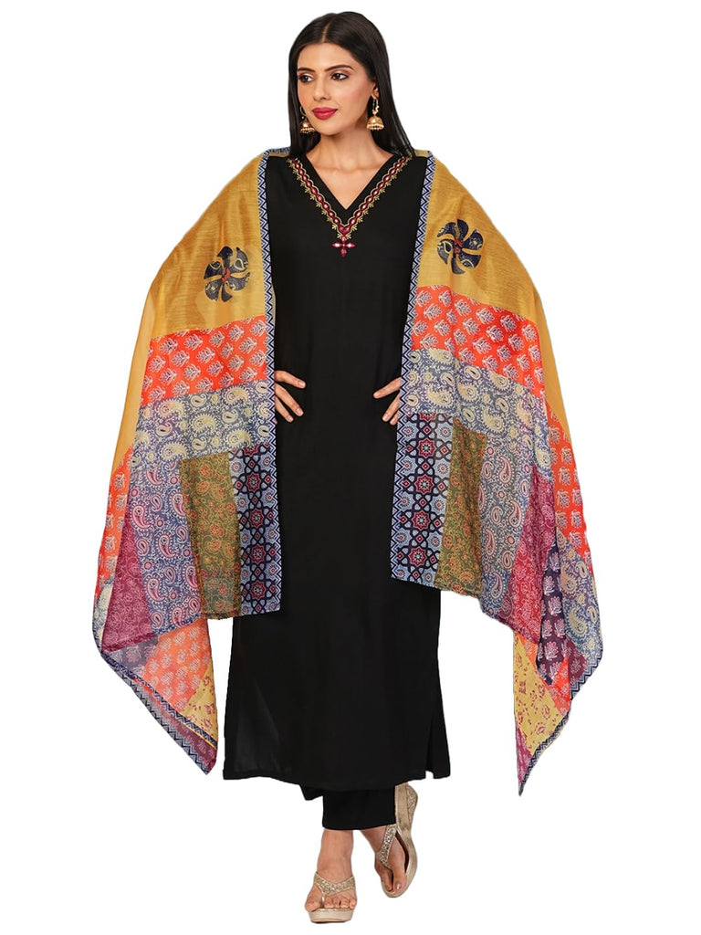 Anni Designer Women'S Cotton Blend Embroidered Straight Kurta With Pant & Dupatta (Fronx Black-Nw_M_Black_Medium)