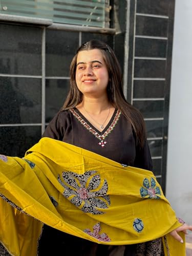 Anni Designer Women'S Cotton Blend Embroidered Straight Kurta With Pant & Dupatta (Fronx Black_S_Black_Small),Black,S,,,