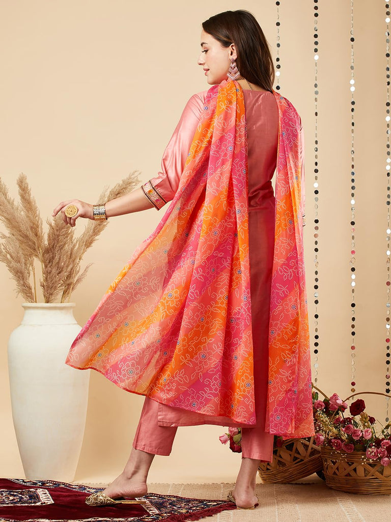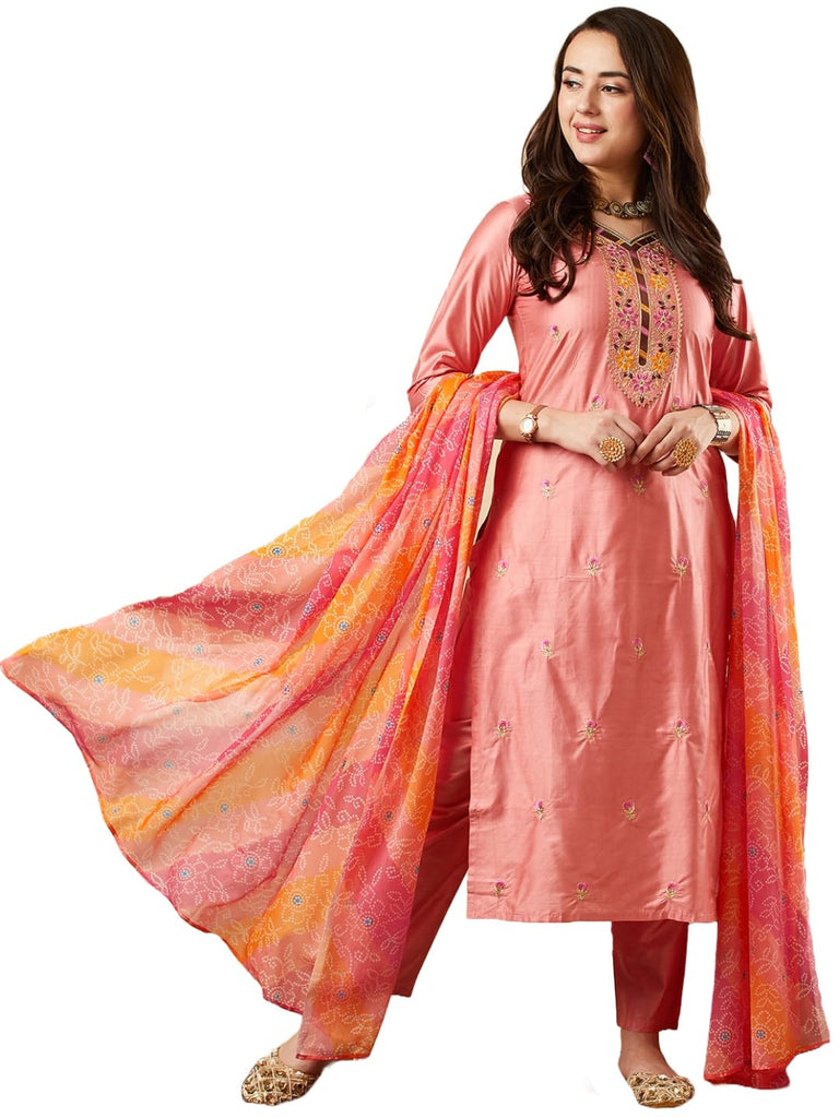 Descriptionanni Designer Women'S Cotton Blend Embroidered Straight Kurta With Pant & Dupatta (Lily Peach_M_Peach_Medium)