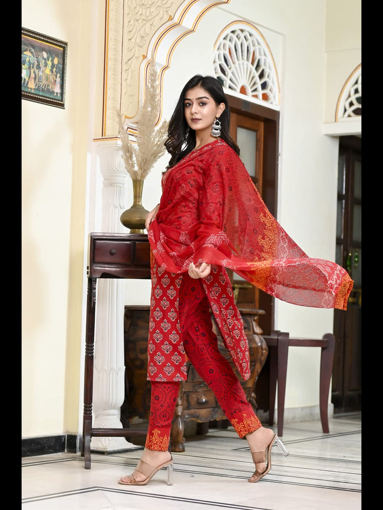Anni Designer Women'S Cotton Blend Floral Printed Straight Kurta With Pants & Dupatta (Shank-Maroon-Cmd_L_Maroon_Large)