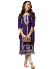 Anni Designer Women'S Cotton Blend Floral Straight Kurta (Chndru Violet Small),Violet,S,Cotton Blend,Straight,