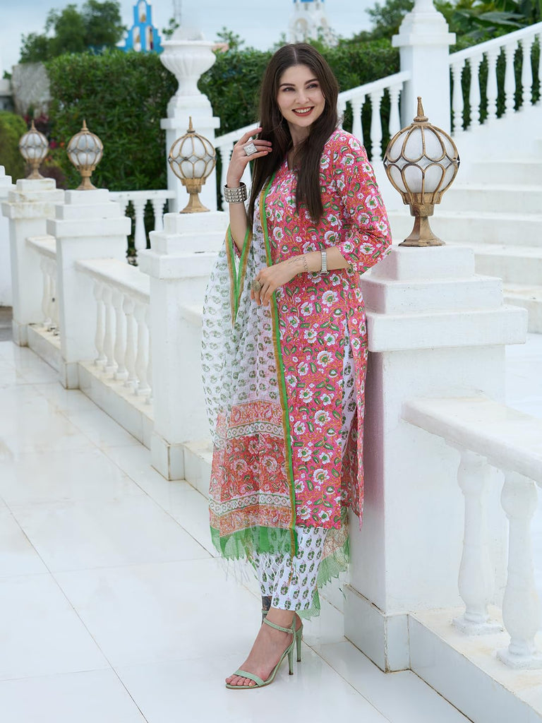 The ANNI DESIGNER set includes one kurta, one pair of trousers, and one dupatta.