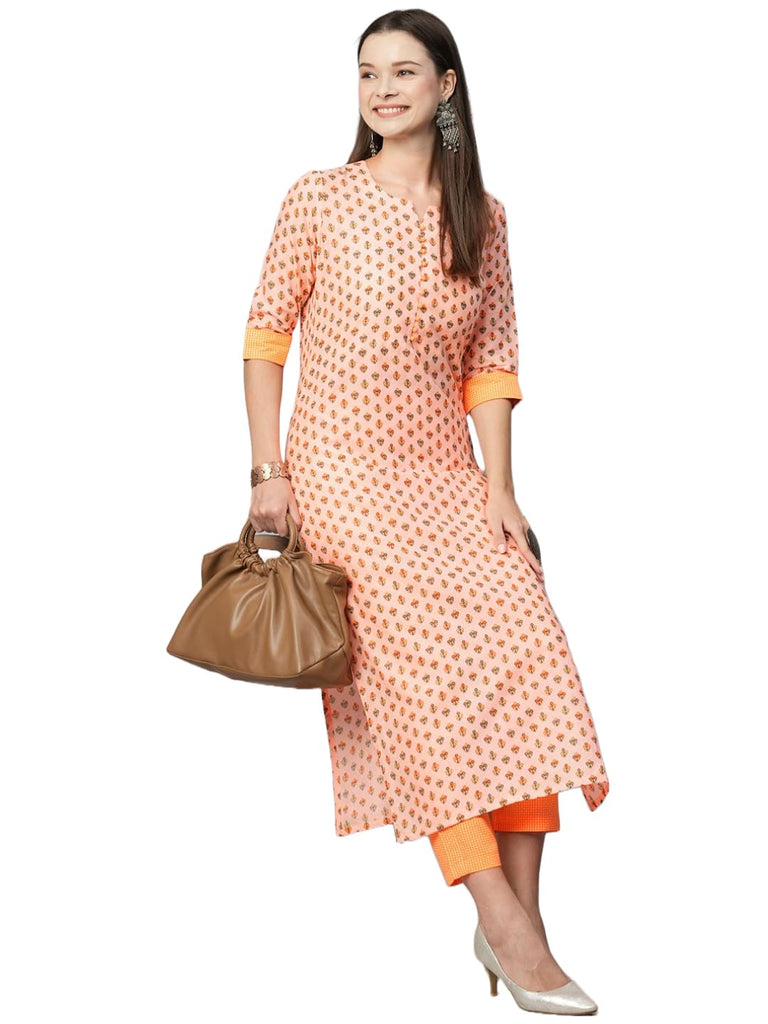 Descriptionanni Designer Women'S Cotton Blend Printed Straight Kurta With Pant (Otti Mehandi-N2W_M_Mehandi_Medium)