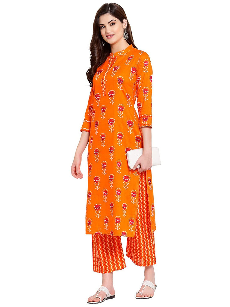 Anni Designer Women'S Cotton Blend Kurta With Pant (Kpt-Cot-10033-Orange_Khaki_Xx-Large),Khaki,2XL,Cotton Blend,Regular,Pants